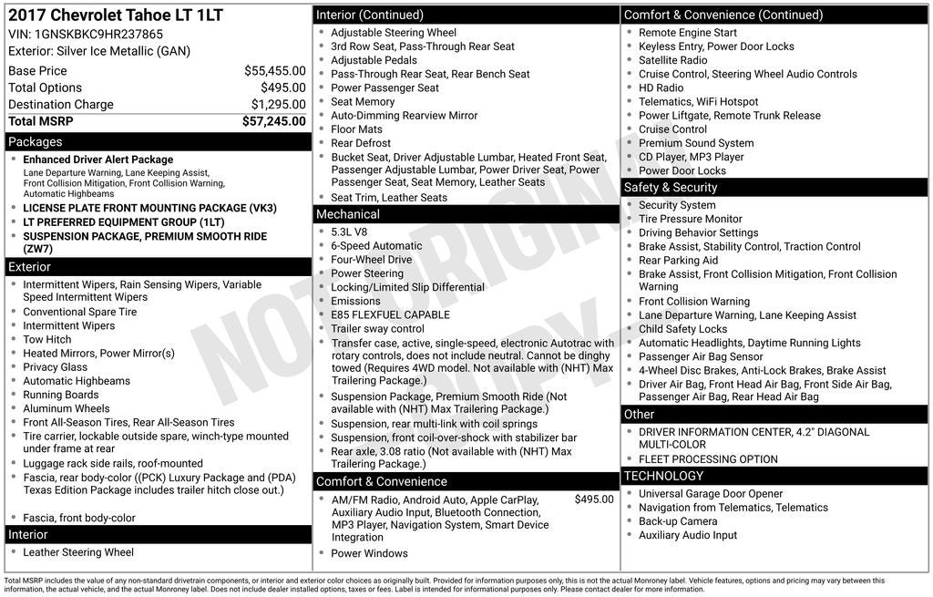 2017 Chevrolet Tahoe LT 4WD EcoTec3 5.3L V8 6-Speed Automatic Electronic with Overdrive 4D Sport Utility Silver Ice Metallic